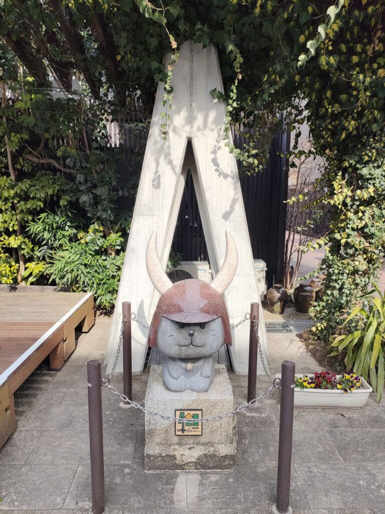 猫のモチーフは彦根藩の2代目藩主である井伊直孝を寺の門前で手招きして雷雨を救ったとされる招き猫、赤色の兜は井伊軍団のシンボルである赤備えの兜がモチーフになっているそうです。